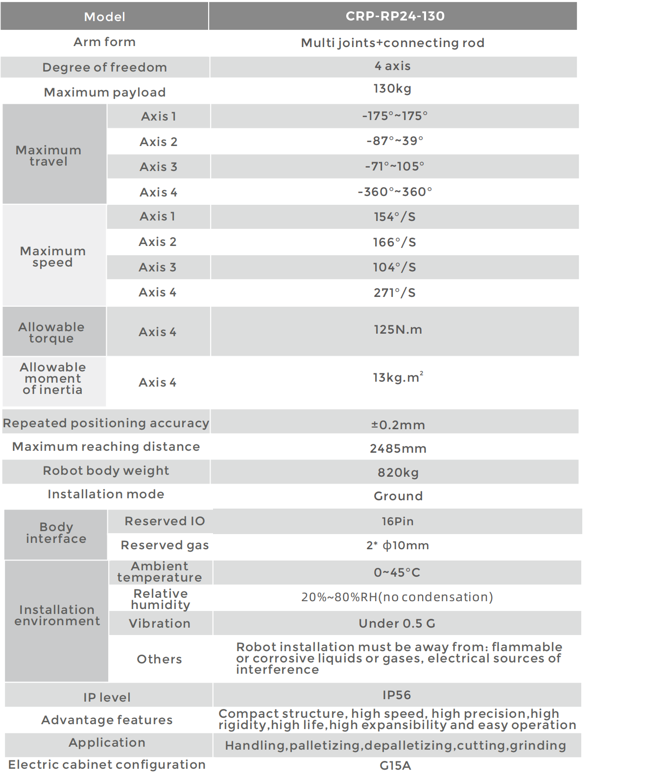 Equipped with gravity compensation, load adaptation, and S-T function, the whole machine has higher accuracy, smaller impact, and faster typical working cycle.